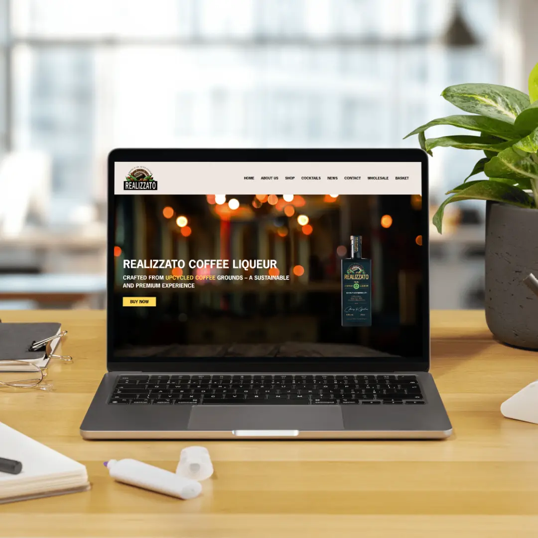 To showcase and celebrate the launch of Realizzato, I collaborated with Scott Saunders of Digital Marketing Groundworks to design and develop a dedicated website for the product. The dark tones of the website design perfectly capture the mood and flavour of an indulgent coffee liqueur experience, contrasting with the bright green and gold, which represent an ethical, planet-friendly and premium quality product.
